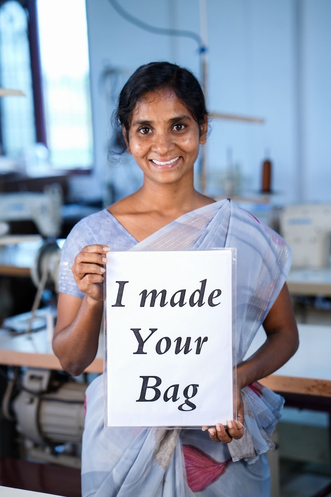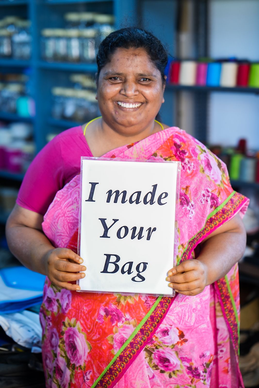 However, our specialty is that each bag comes with the story of the woman who made it with her photo and own signature.